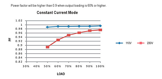 具功因矯正功能機型,負載需大于規(guī)格書PFC定義范圍,功率因子與輸出負載關(guān)系如圖(1)所示,會依機型定義不同,一般設(shè)計值為75% LOAD以上。