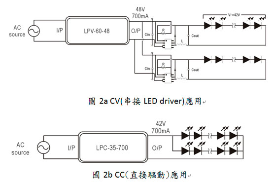 注: 一般同一批LED的VF電壓可能為一區(qū)間(如3.4~3.6V),每顆LED均有差異,電源選用上需納入此差異之考慮