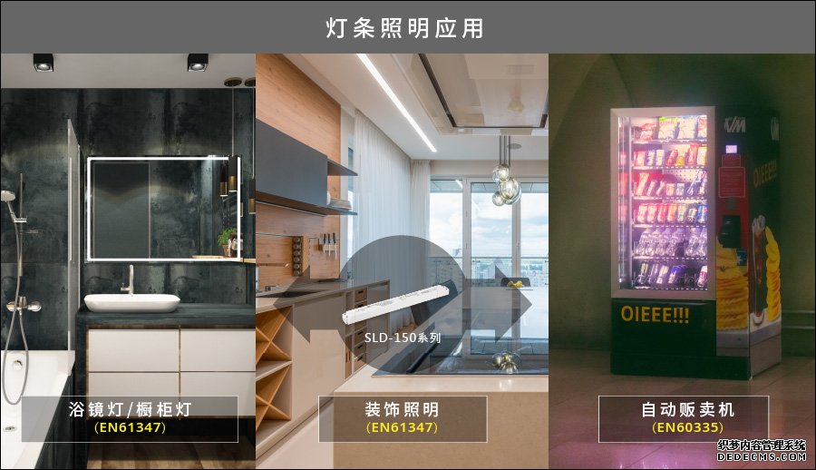 明緯新上市LED驅(qū)動(dòng)電源SLD-150系列,延續(xù)同款SLD-50/80系列超薄長(zhǎng)條型機(jī)構(gòu)設(shè)計(jì),新增150W功率讓整體瓦數(shù)應(yīng)用更加完整,可針對(duì)裝飾燈條照明/廣告燈箱或長(zhǎng)條型燈具做搭配使用,提供給不同照明產(chǎn)品應(yīng)用。安規(guī)認(rèn)證除EN61347,也同時(shí)針對(duì)EN60335-1家電類安規(guī)做申請(qǐng),提供自動(dòng)販賣機(jī)及冷凍展示柜照明使用。